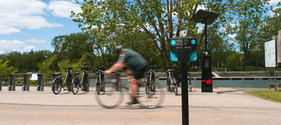 - Participer à l’évolution des pratiques de gestion de la bordure, notamment par l’intégration de solutions de mobilité durable (bornes de recharge, stationnements vélo, véhicules en libre-service, pôles de mobilité sur rue, etc.) et de nouveaux usages de l’espace public;